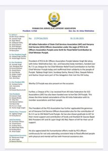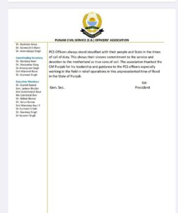 इसके साथ ही एसोसिएशन ने यह भी बयान दिया कि पीसीएस अधिकारी हमेशा अपने लोगों और राज्य के साथ कर्तव्य के समय दृढ़ता से खड़े रहे हैं। यह उनका सेवा और मातृभूमि के प्रति समर्पण दर्शाता है। एसोसिएशन ने मुख्यमंत्री पंजाब का नेतृत्व और मार्गदर्शन के लिए धन्यवाद किया, विशेष रूप से उन अधिकारियों के लिए जो राहत कार्यों में मैदान पर लगातार सक्रिय रहे हैं। इस अभूतपूर्व बाढ़ संकट में पीसीएस टीम ने साहस, समर्पण और सेवा भावना की अनूठी मिसाल पेश की है।